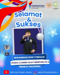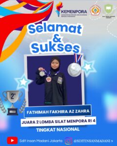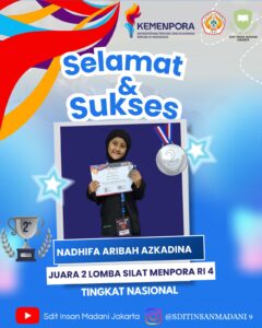 Jakarta, November 2025 — SDIT Insan Madani Jakarta kembali mengukir prestasi membanggakan dalam ajang Lomba Silat Menpora RI 4, sebuah kompetisi bergengsi yang diadakan oleh Kementerian Pemuda dan Olahraga Republik Indonesia (KEMENPORA).